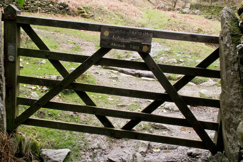 At the junction the signpost read, 'Public Footpath, Greenhead Gill & Alcock Tarn.'