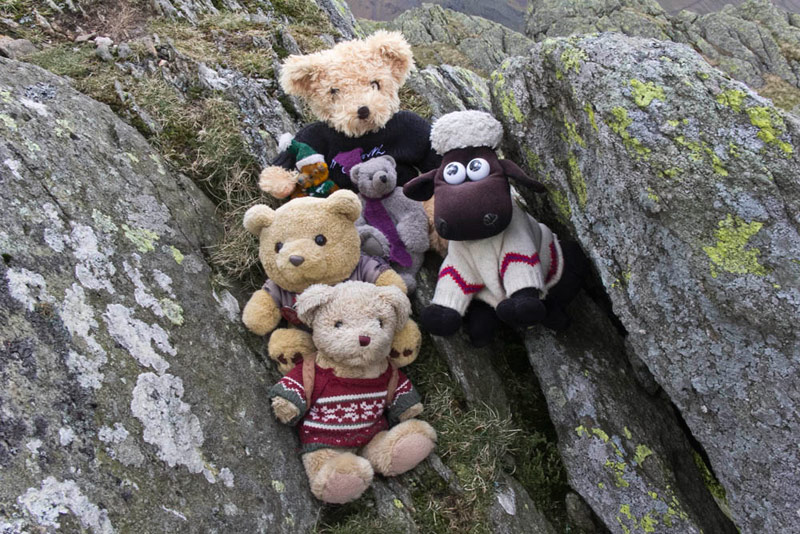 Dad said, "I don't wish to boast but I completed them in 2007. I collect teddy bears and have a group that go on the walks with me. Shaun the sheep and Tetley completed them at that time, but Allen and Grizzly had not, so I repeated 100 for them."