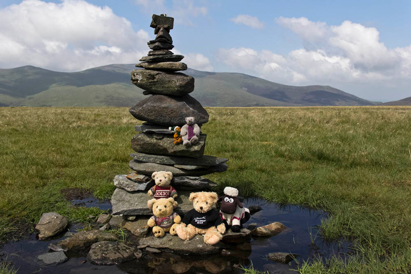 Quite why Wainwright included this in his 214 summits is a mystery, as he himself admits it is just a flat area at the rear of Blencathra, and there is no significant drop off for it to be considered a separate fell. There is nothing to recommend this summit, apart from the rather arty cairn, which we settled on of course for our picture. We were glad that it was not too windy, as the prospect of falling into the surrounding pool, did not fill us with joy.