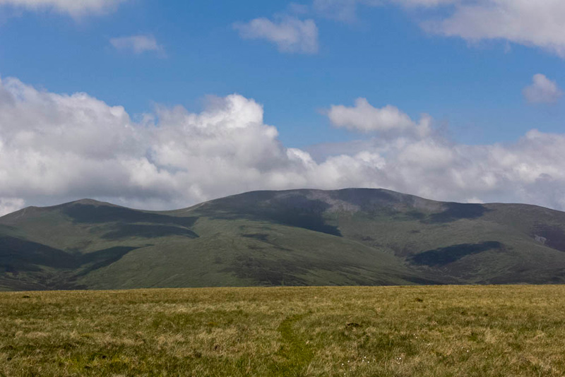 and then more to the right this of Great Calva with its twin summits. This is accessed from the Skiddaw Forest behind Skiddaw. The ascent is hard through rough heather.
