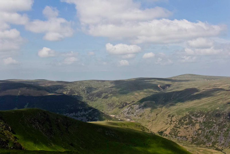 "The route to The Tongue is pretty pathless, so there does not seem to be much point in returning to the main summit of Bowscale Fell", said Shaun. I know it will be rough going, but it would seem to make sense to contour round the head of the valley of Bullfell Beck."