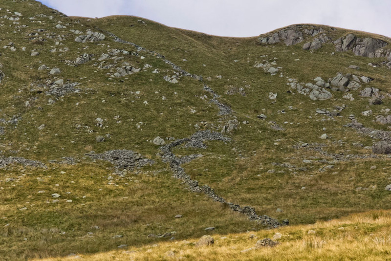 As they headed off we settled for our lunch, before we began the descent. First by the wall, then on a path drifting away towards Kentmere. This was not actually the path we wanted, as it brought us to the track nearer the Kentmere side so making a slightly longer walk back to Sadgill, but was less steep.