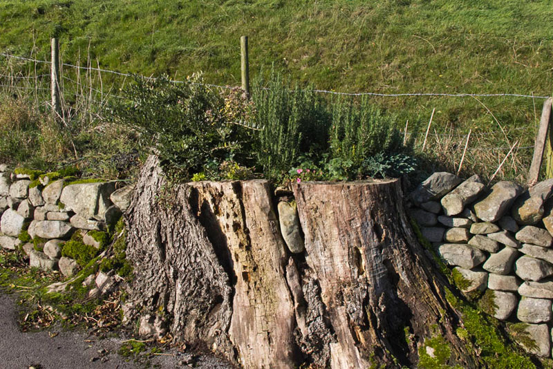 Along the access, Allen called out, "look how use has been made of that tree stump, with shrubs etc being planted." Now autumn there was not much colour, but there were signs that that would not be the case in summer.