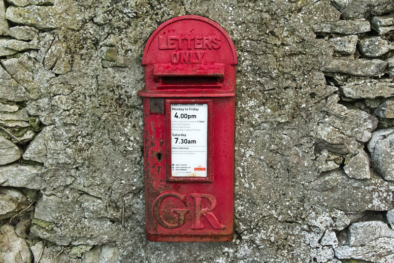 This led us to and through the hidden and huge caravan park. They are permanently sited caravans and we say huge as it was noted that one was numbered 296! Following the waymarks, this then led on through the cottages of Far Arnside, and so to the main road that we had driven along this morning. Directly opposite was this wall post box that dates from the reign of King George V.