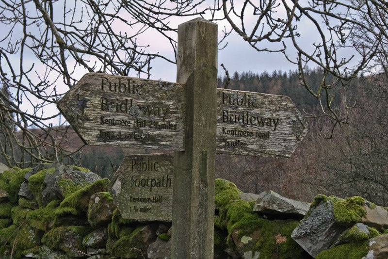 Over the hill it was right by a fence and through a gate, then crossing the field to a gate onto a lane by the River Kent, which was followed to Ullthwaite Bridge.