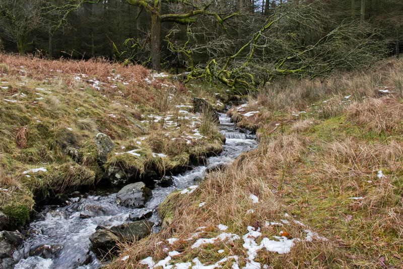 Soon the path came near to the beck and we followed by it. Ahead was a wall and a gate. "We descended to that gate from Sallows", said Grizzly.