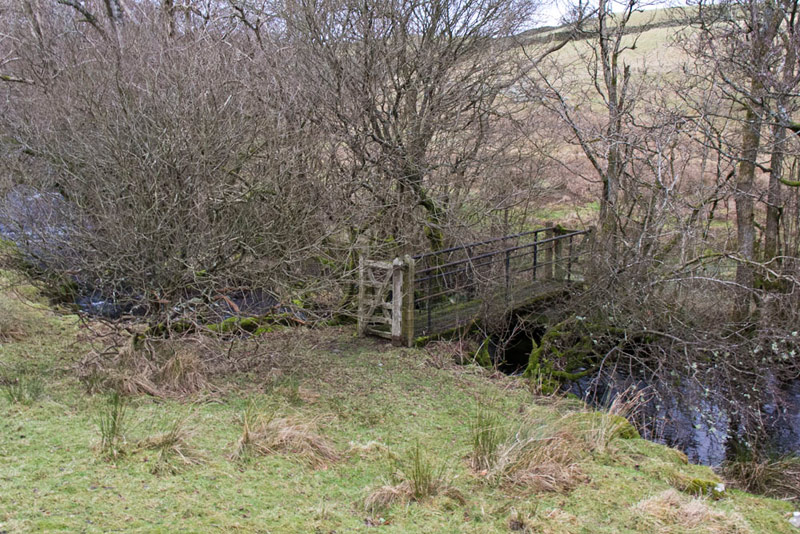 Across the field and via a another gate, the path then meandered on down. "We are looking for a footbridge over the River Gowan", said Shaun.