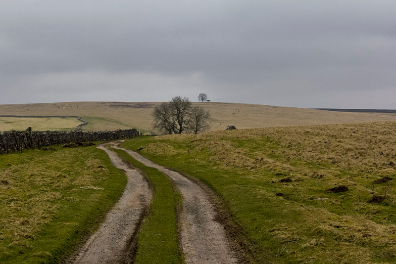 "It is the left fork we want", replied Shaun. "In fact we follow it keeping by the wall and ultimately we will walk to the distant prominent tree in the skyline."