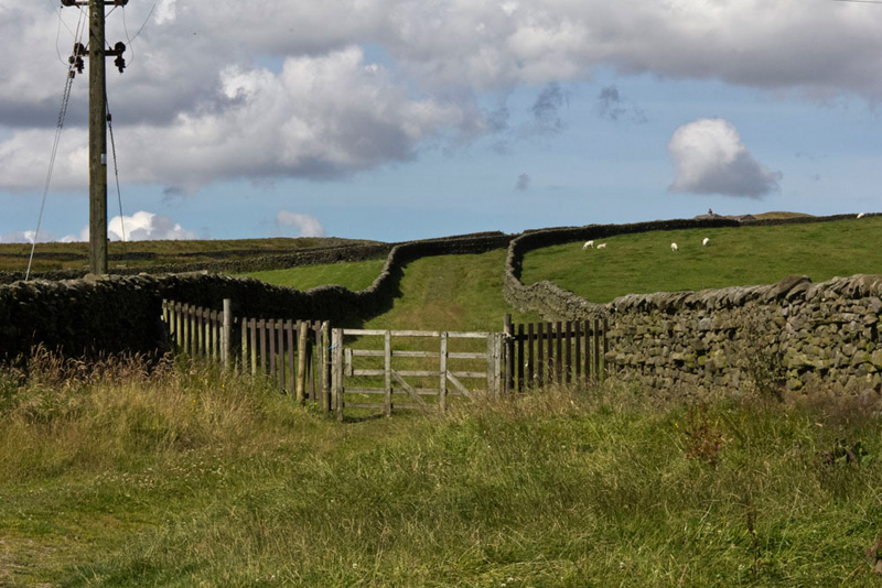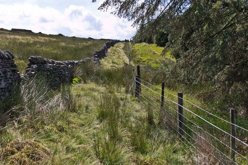 Beyond a second gate the track was unenclosed on the right. Clumps of long grass grew in the track and soon it just became a narrow trod to a gap stile in the wall.