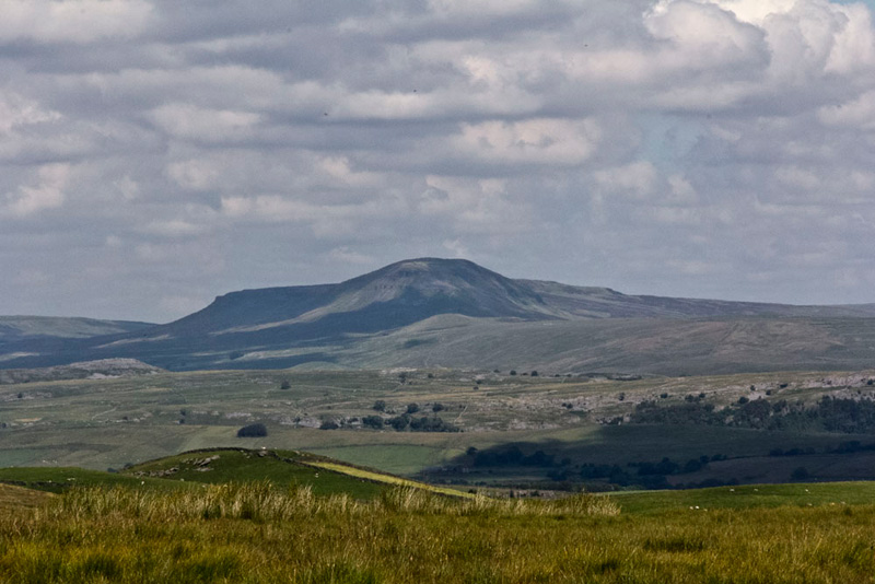 Dad strolled the road, with Scoutber Crag, away across the fields and distantly beyond the unmistakable shape of Ingleborough.
