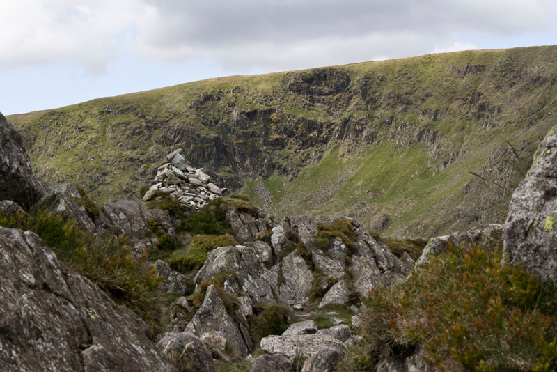 Going across in front of the shelter is the ascent to Harter Fell, while sharp right a path descends to Kentmere. Our route was left down the rough, rocky and steep path that winds its way to Small Water.