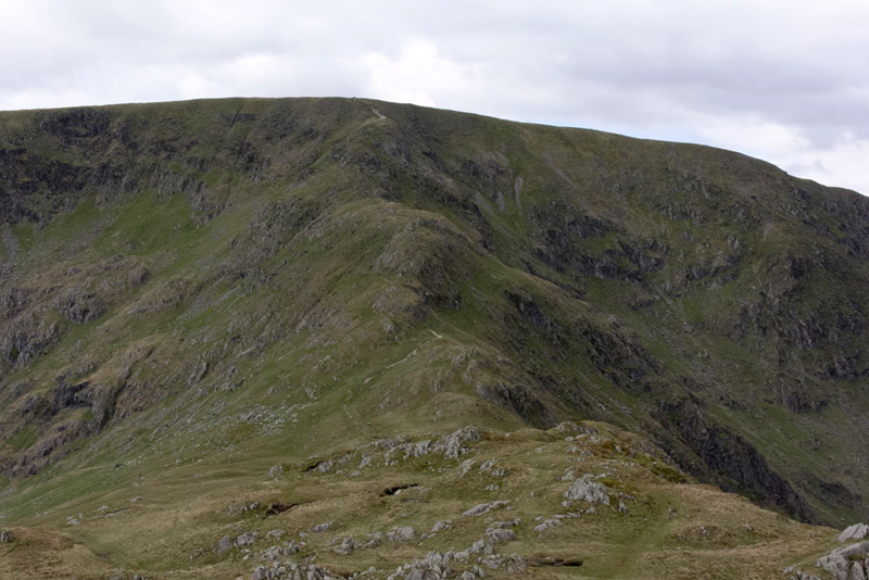 Finally the bulk that was Rough Crag was before us and after a bit of a scramble level ground was reached and the summit cairn came into view, with High Street behind.