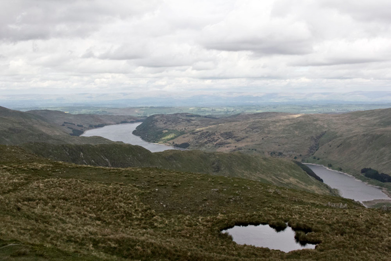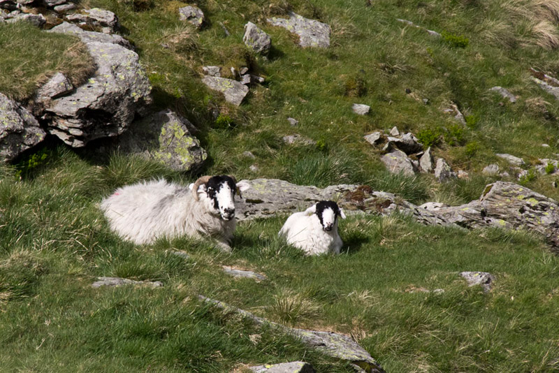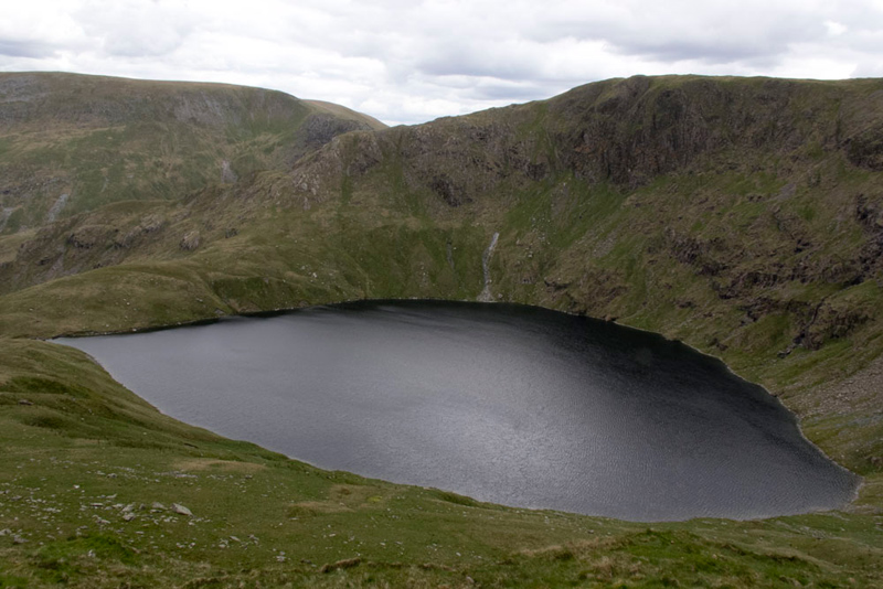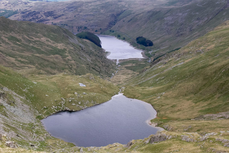 Ready and settled again, we then continued on the descent towards Nan Bield, this lovely view of Small Water and Haweswater before us.