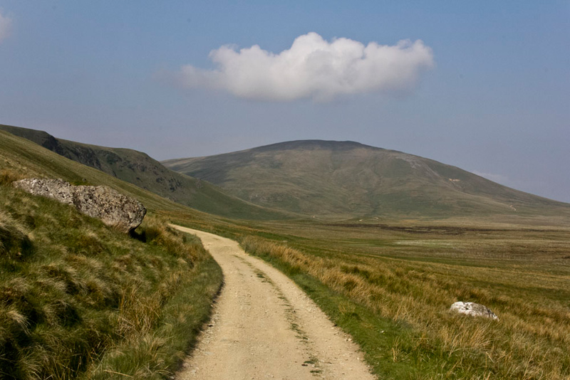 From High Brow, a wide tractor track wound on eventually coming to a hollow below the last summit Low How.