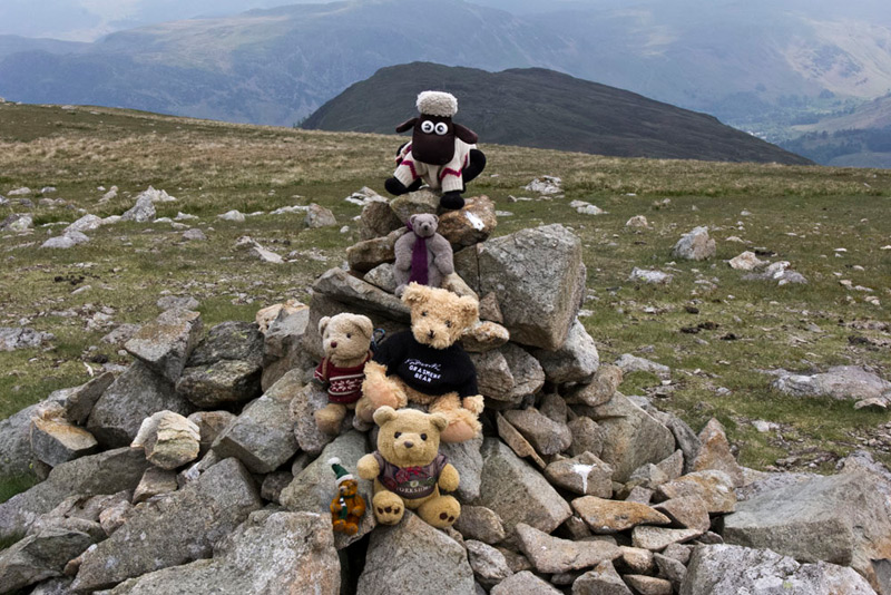 We retraced our route to Stybarrow Dodd, passing Jeff coming the other way and exchanging a few words. Here made straight to the cairn, Southey calling out, "come on pals time for our picture."