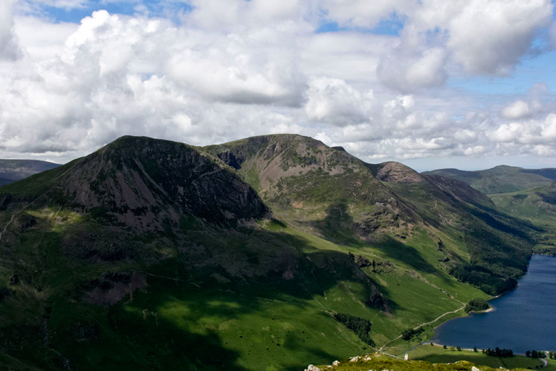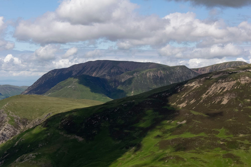 And lastly to the east side of the lakes, Grasmoor (2795ft) with the ridge in front, from the left, being Whiteless Pike (2165ft), Third Gill Head Man (2402ft) and Wandope (2533ft).