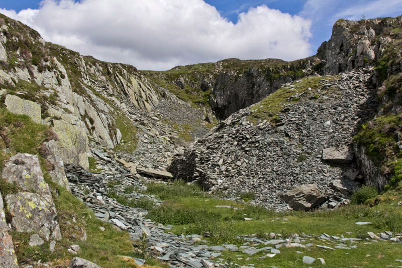 Huge spoil heaps abound and we walked through passing the ruins of some of the quarry buildings.