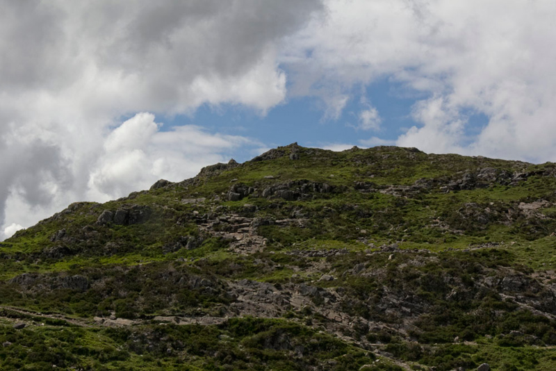From here the route to the summit could be seen, the path crossing left to gain the final ascent.