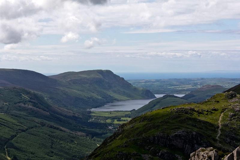 Tetley obliged. "The lakes are from the front Buttermere, Crummock Water and distantly Loweswater. Red Pike is the fell above Buttermere. Above Crummock is Mellbreak with to its right Hen Comb and behind the higher summits are Gavel Fell and Blake Fell. That in shadow behind Mellbreak is Carling Knott. Distantly beyond is the Solway Firth and the faint shape of the Scottish hills."