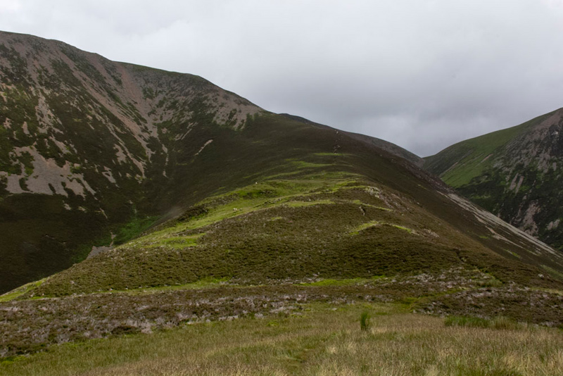 Down and down to the crossroad of paths. That to the left goes to Coledale Hause, while the grassy path right heads to Third Gill Head Man and Whiteless Pike. This was our route, but after just a few yards, forked left on the grassy trod that led to the cairn on Wandope.