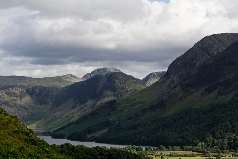 So we drove through the lakes to Keswick, and then to Braithwaite. Then over Newlands Pass to Buttermere, here going right beside Crummock Water to the start. This is a rough parking area on the right, by Cinderdale Beck, just a little way past Hause Point.