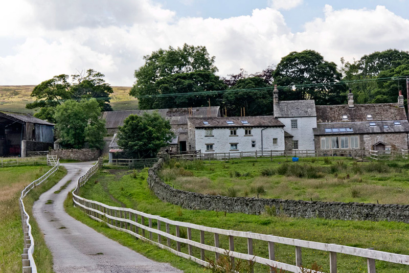 After passing through two gates, we then descended half left down to a gate and on to cross the footbridge over Keasden Beck. Wound right to pass Clapham Wood Farmhouse and follow its access track.