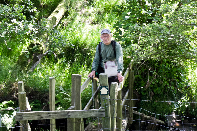 Dropped down now to the small ravine containing Badger Ford Beck, crossing by the stile & bridge, Uncle Eric posing on the latter.