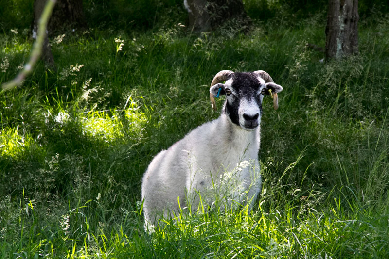 So far Allen had been successful in avoiding any sheep pictures, but along here some were grazing amongst the trees by the track, sensibly keeping out of the sun. One posed for Dad.