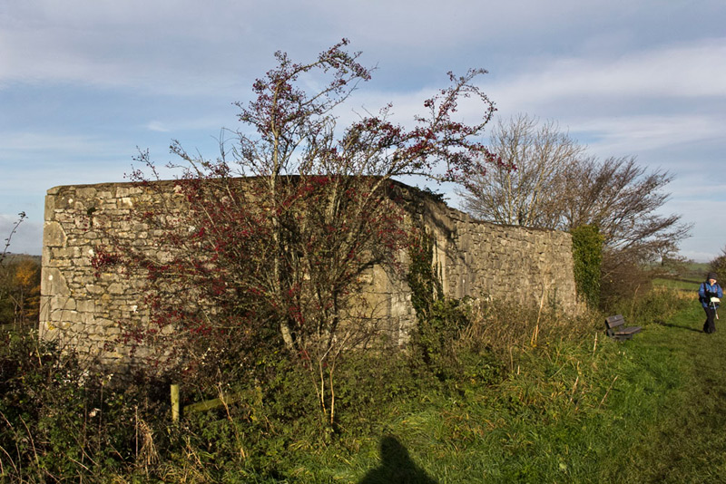 The path became walled on both sides and then just on the right, taking us to a wall junction, where Shaun instructed, "we go through the gate ahead and then on beside the wall on the left."