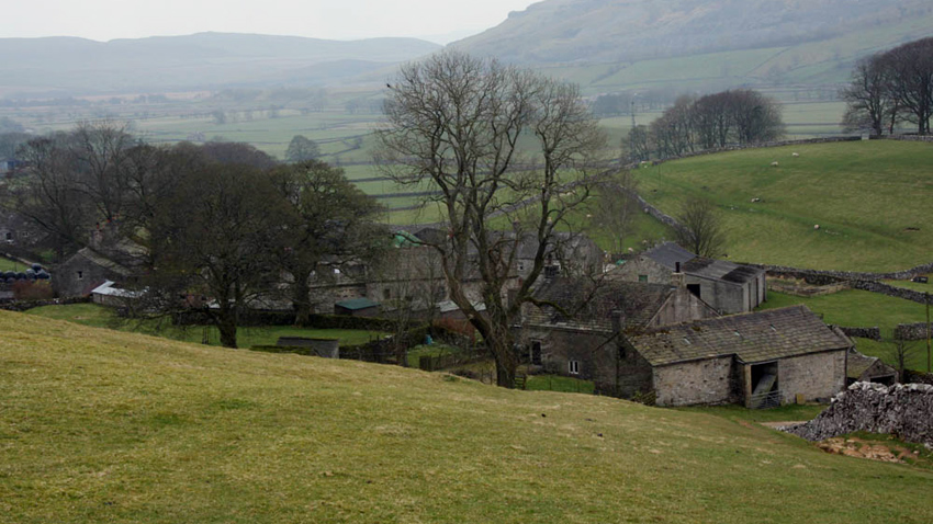 A this point, the path swung sharp right for the final steep climb to the ridge, from where there was this fine view. Horton can be made out nestling in the valley backed by the huge Horton Quarry, with distantly the Lune Valley.