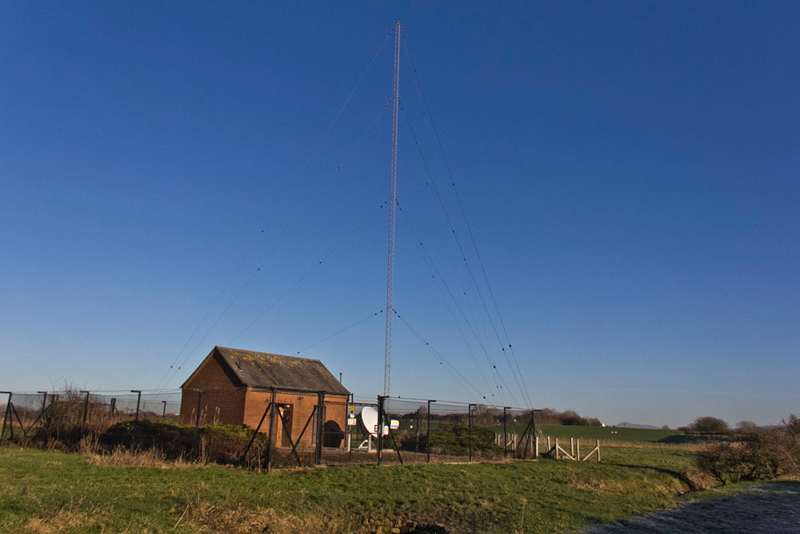 At the far side of the road, it was left through a gate onto a broad grassy track, passing this communications station. As as passed by in 2019, Tetley commented, "the tall mast has gone."