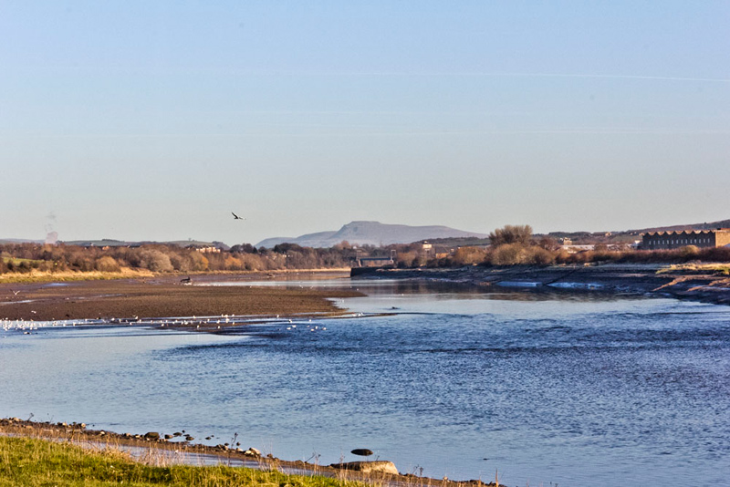 Snuggling down again in the rucksack, Dad strode off left along the road that runs by the River Lune and at high tide can be impassable. We had checked before setting off and knew it would not be high tide.