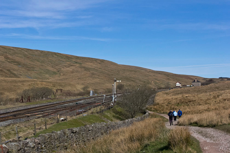 Striding out Dad marched on, the path climbing, then bending right with the slopes of Blea Moor to our right. Now close to the railway we first passed Blea Moor sidings...