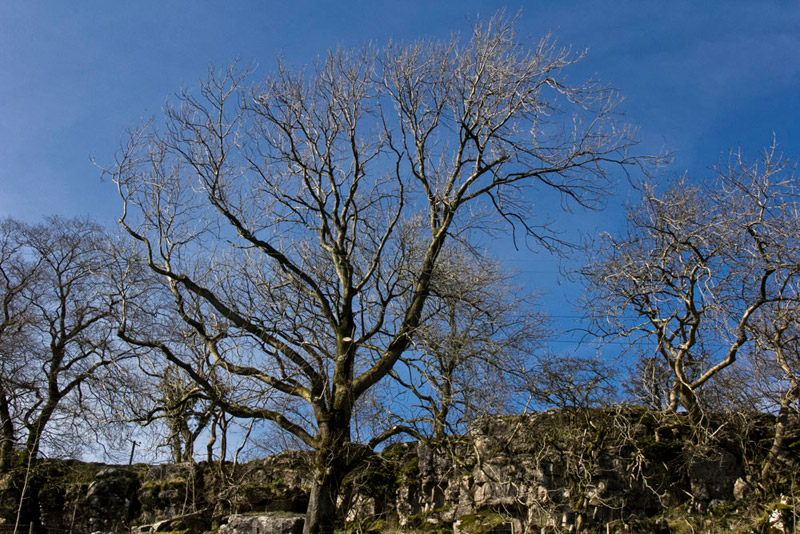 The route led to Ivescar Farm, passing these trees bare against the cloudless skies.