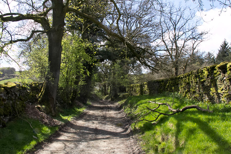 Shortly reaching Four Lane Ends, Shaun said, "we go ahead on the lane signed Black Bank and then when the road swings right, keep ahead along the access to Accerhill Hall."