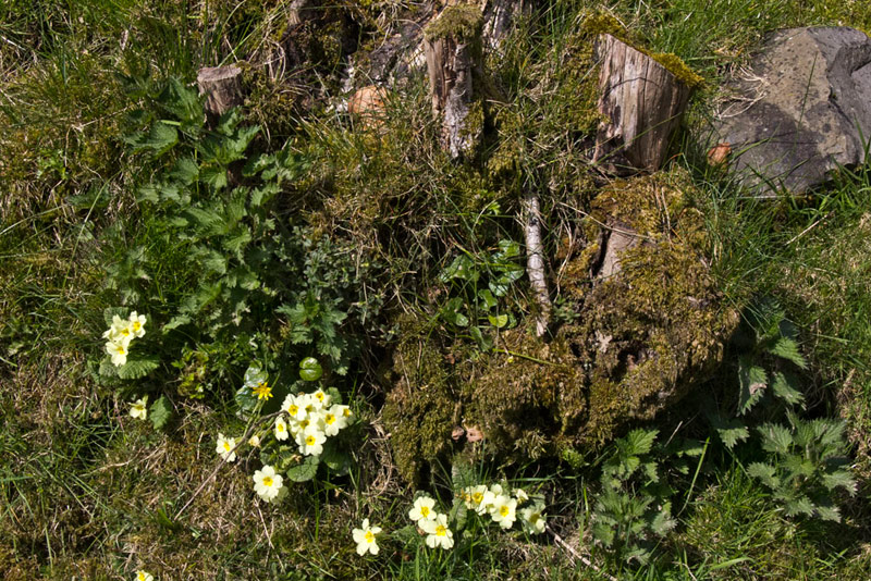 The track then climbed on, with primroses on the bank. "Uncle Brian loves primroses. Take a picture for him, please", said Grizzly.