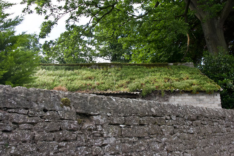 Followed this to the point where Westgarth Avenue swings right, to then go on ahead along narrow Croglam Lane. This is lined on the left with garages for the houses on the main road then further on bounded by a tall wall, over which we could see this building with grass on the roof.