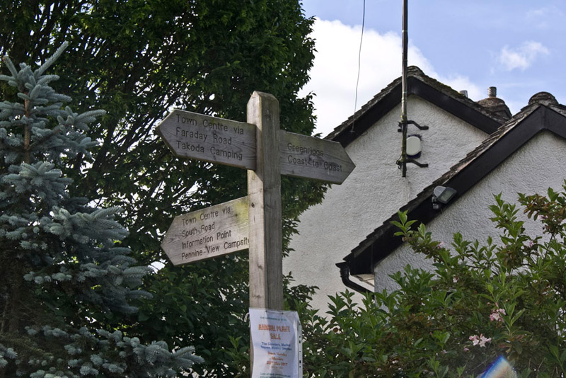 A signpost at a junction indicated we should keep on towards Greenriggs...