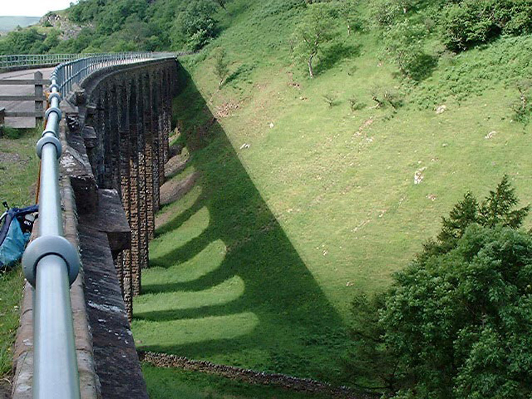 The viaduct which is 90ft high with fourteen stone arches, carried the old North Eastern Railway line across the dramatic valley of Scandal Beck. It was built in 1861 by the Cumbrian engineer Sir Thomas Bouch as part of the South Durham & Lancashire Union Railway, which crossed the Pennines to carry coke to the iron and steel furnaces in the Barrow area and West Cumberland. The line was closed in 1962 after steelmaking finished. The trackbed for several miles at each end of the viaduct already belonged to the Cumbria Wildlife Trust as a national nature reserve, and the viaduct was vital link between the two sections. In the Autumn of 1992 after a major restoration, the viaduct was formally handed over to the trust by the late Lord Whitelaw, together with the nearby Drygill viaduct, to become a permissive footpath. (source www.visitcumbria.com)