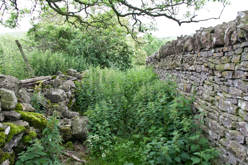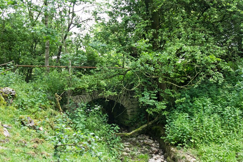 Through the farm the way went left to pass by the walls of the dismantled railway bridge.