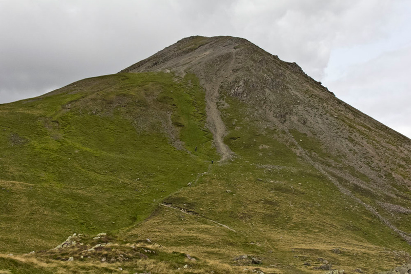 "Aye lad", replied Dad, "but I was well aware of what we faced. Originally the path was straight up where the scree is in the centre. That got so eroded, that there is now the series of zigzags just to the left. You can see the gentlemen from Barrow just starting up those. At the top the path cuts right across the scree to gain the final ascent."