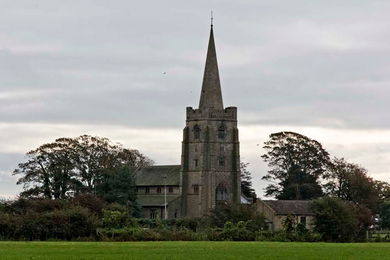 Dedicated to St John the Baptist, the church was built in 1886–87, on a site some 100 metres (109 yd) to the north of the old church, it was to replace. Designed by the Lancaster firm of Paley & Austin it provided seating for 410 people. Constructed in sandstone with slate roofs, the plan consists of a five-bay nave with clerestory and north and south aisles. The south porch, two bay chancel with a north vestry form a transept. The west tower has a recessed spire. (source Wikipedia)