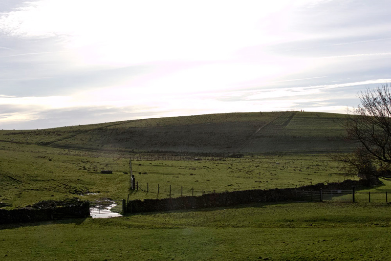We had spotted on the map Hard Knot Hill, and were hoping to climb to the summit. The right of way continued towards this across the next two fields, and then ended at a cross wall.