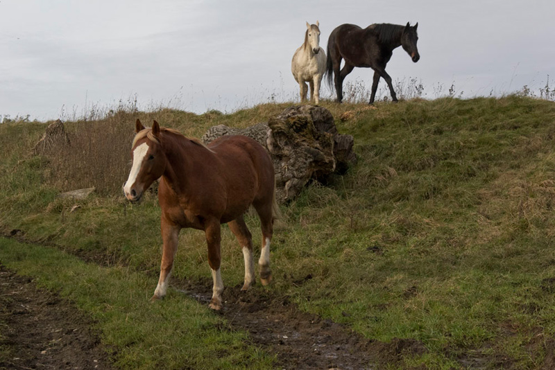 Onwards the track led through Swinden to a gate and along the track, passing these horses.