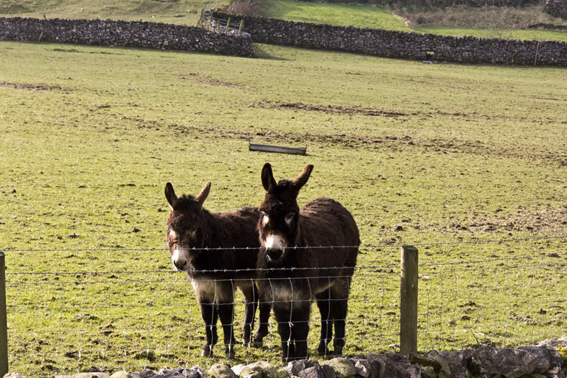 The track led us out to the road by Silloth House and Mill Bridge, turning right towards Austwick. A few yards on some horses were standing by a gate.