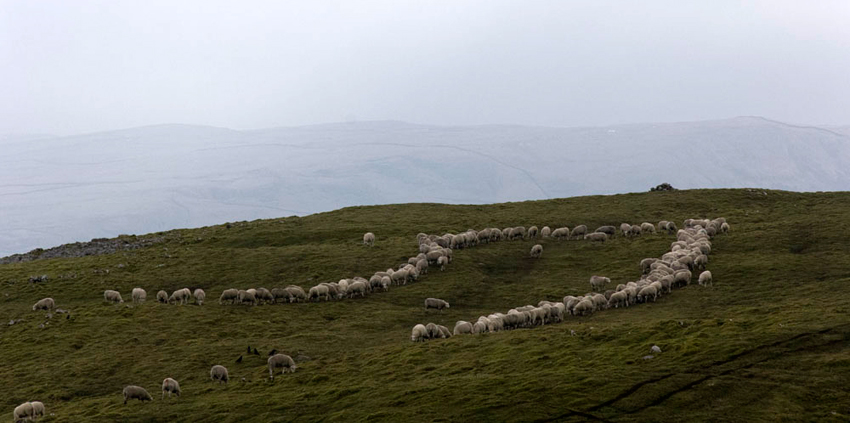 Looking around, Shaun called out, "look at those sheep. The farmer must have just been out with feed."