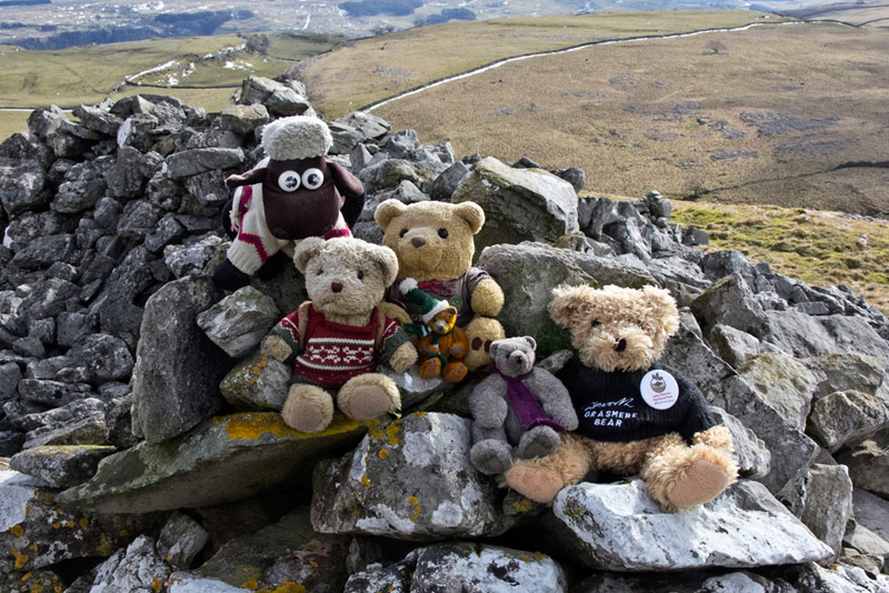 Over the stile the path climbed steeply for a short way, then branching left the ascent continued contouring round to the trig point and shelter on the summit of Smearsett Scar.