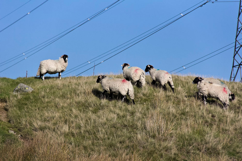 Setting off again we  entered another rhododendron tunnel that brought us to a wall.  Here crossed the stile and then went immediately right to another stile in a few yards.  Now in woodland followed the path to exit into a huge clearing where the trees had been felled.  Crossed this on a  winding path into trees for a short way then over stile to open fell, where these sheep were grazing on a bank.
