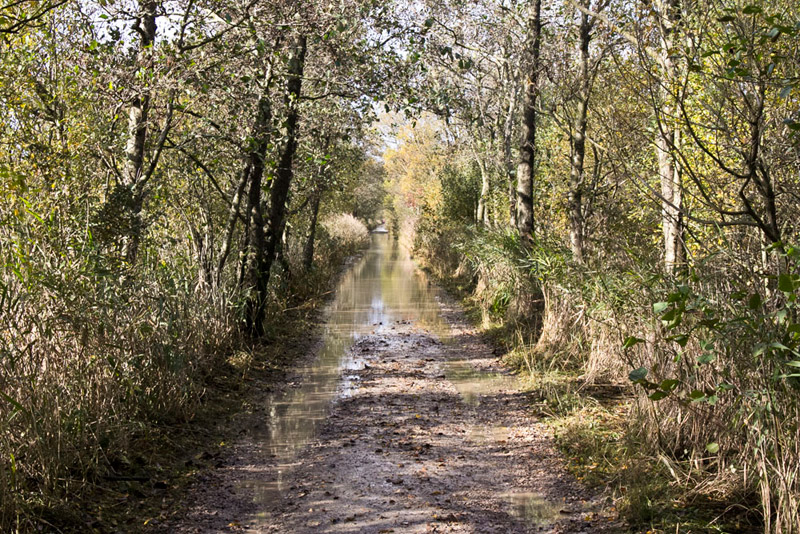 The muddy leaf strewn path meandered its way through the pretty woodland....