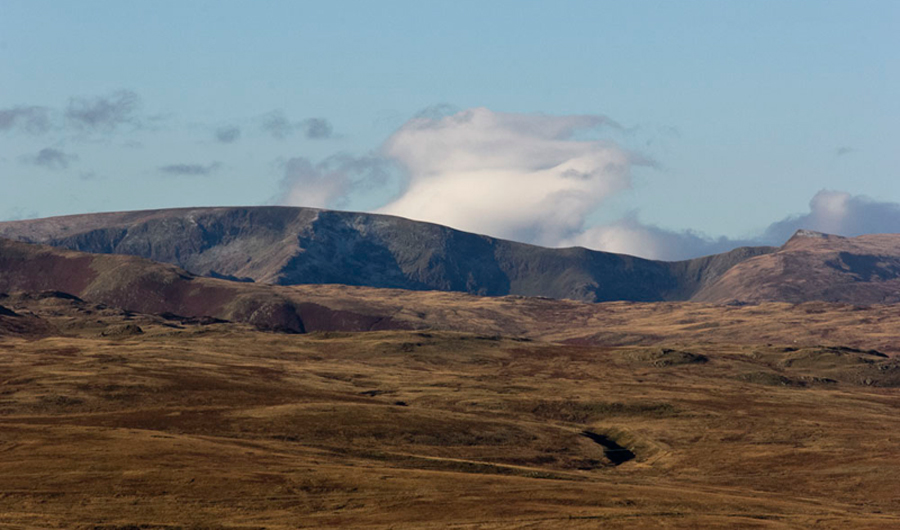 "High Street (828m 2718ft) is to the left of centre, and the triangular pointed summit to the right is Kidsty Pike (780m 2560ft)", obliged Tetley. "We all, you included pal, climbed High Street twice in a week in May 2016. The first was via that prominent spine over Rough Crag, rising almost to the summit. Then later that week along the ridge from The Knott and then on to Thornthwaite Crag."